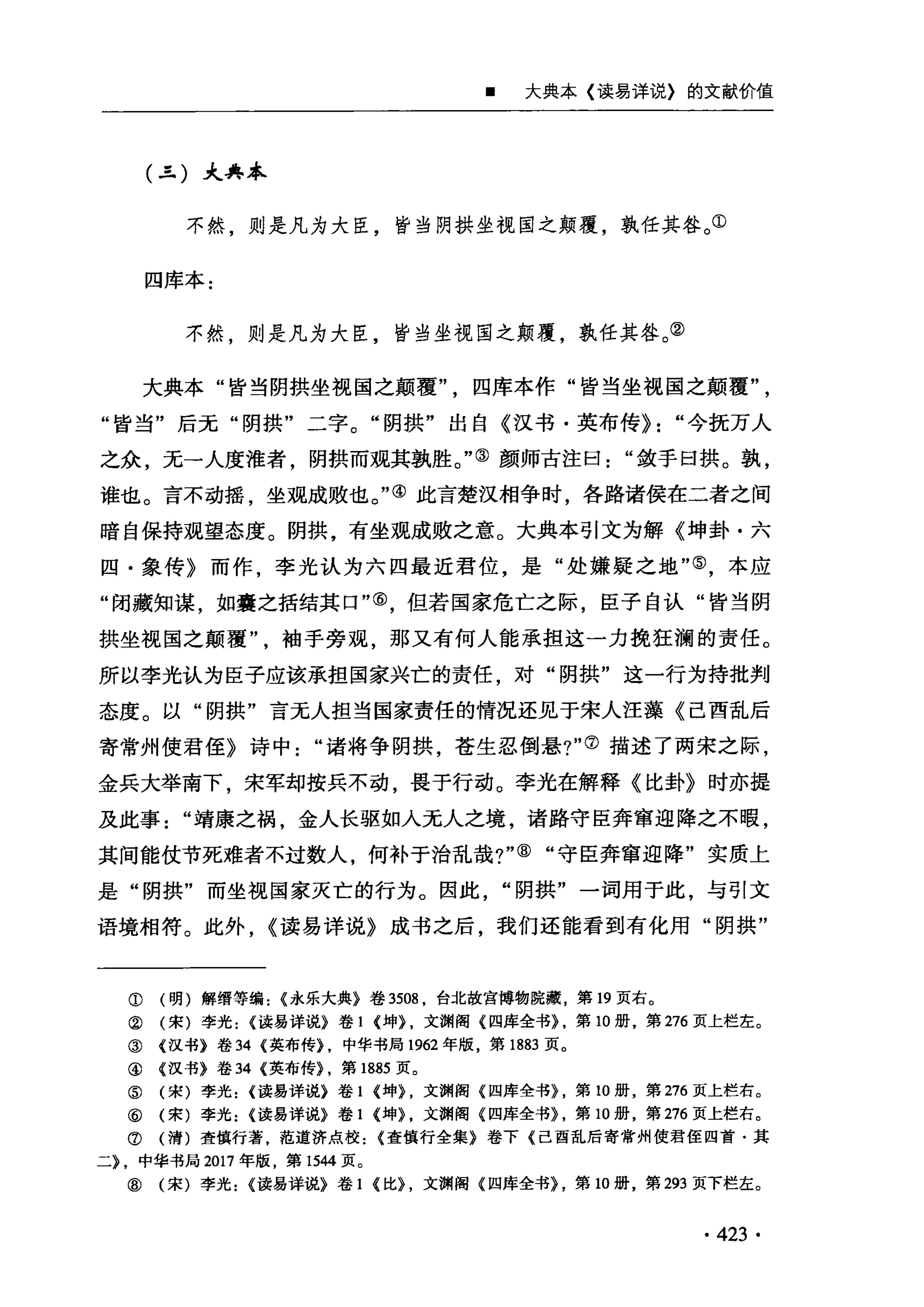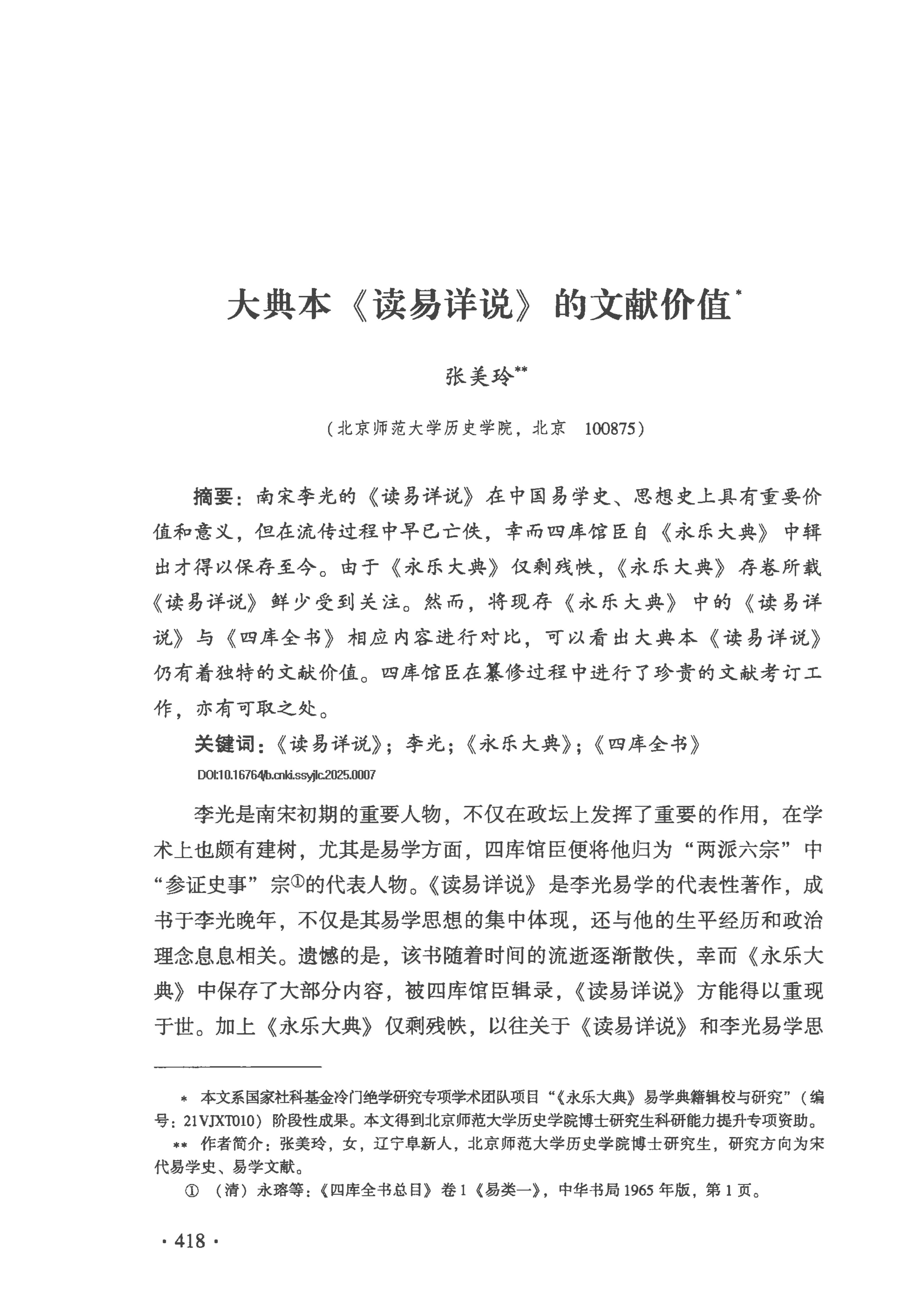 【宋史研究论丛】张美玲:大典本《读易详说》的文献价值